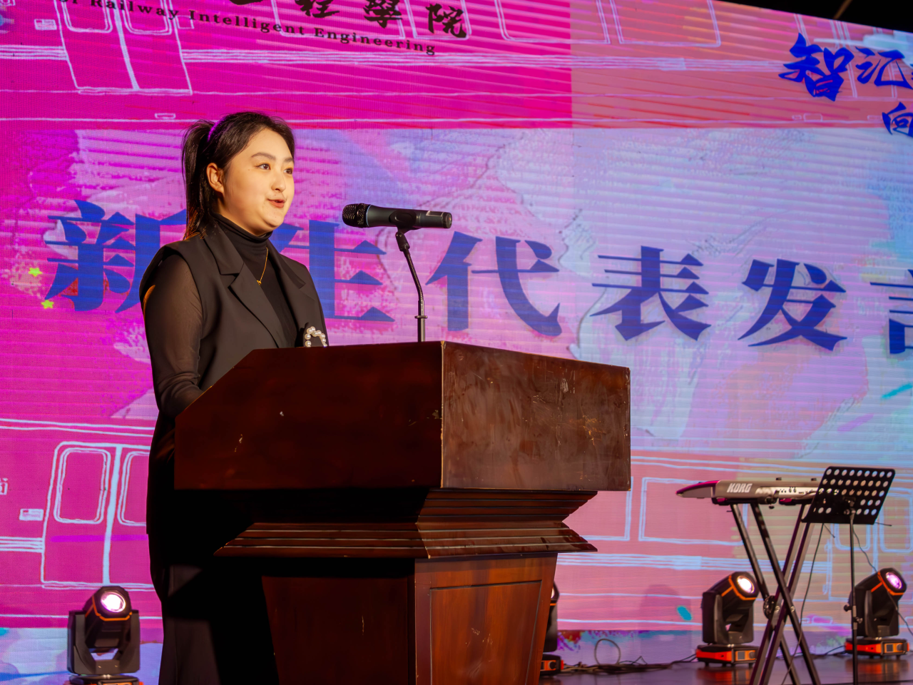 教师代表田宏教授在发言中展望了学院的光明前景,并坚定表达了全心投入学生培养的决心。她对学生寄予厚望,送上了诚挚的祝福和深刻的教诲。