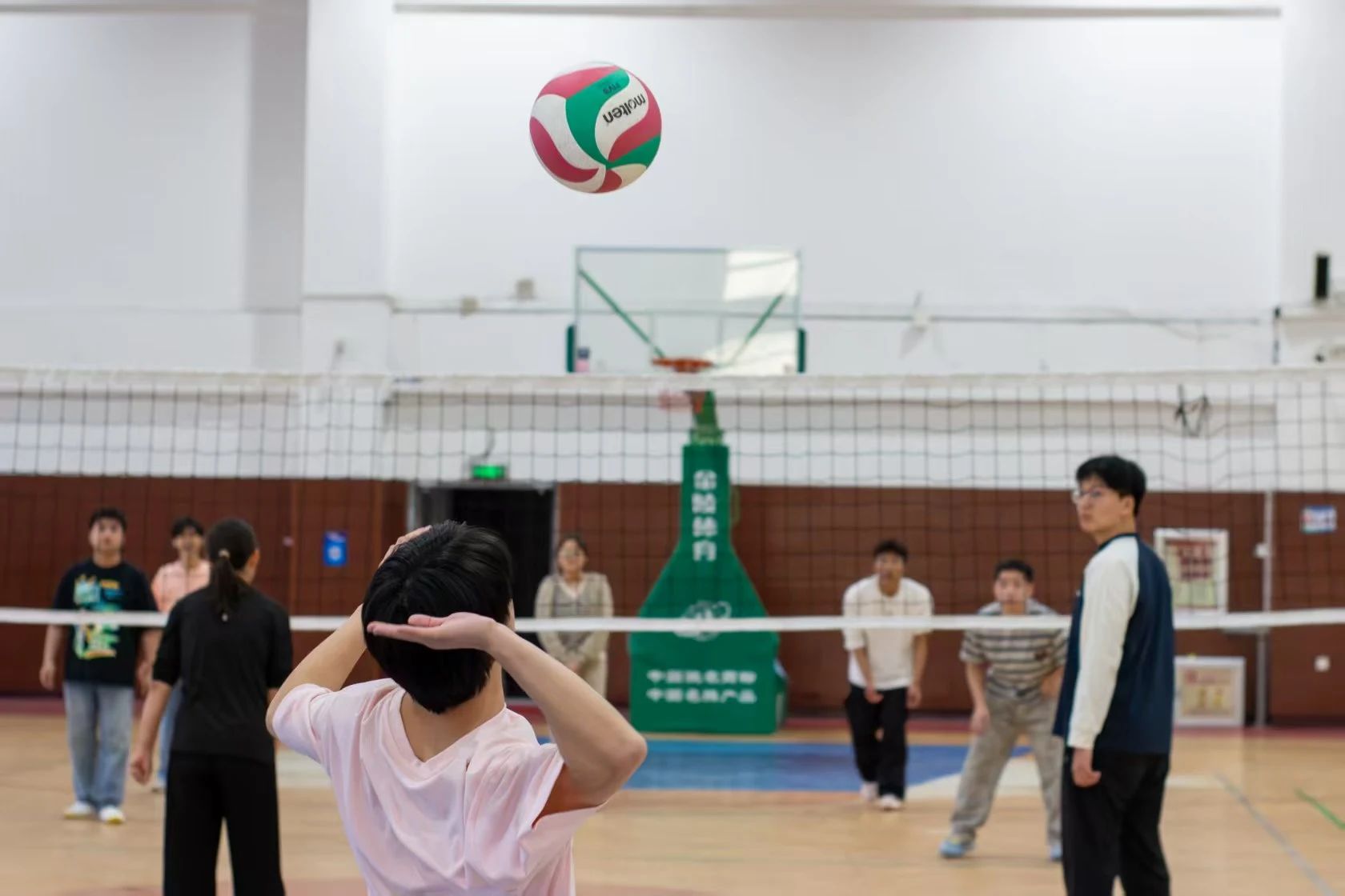 赛场上,同学们配合默契,传球、垫球、扣球,配合默契,诠释着 “球不落地,永不言弃” 的精神。场下观众的欢呼声此起彼伏,青春与活力在球场上尽情绽放。