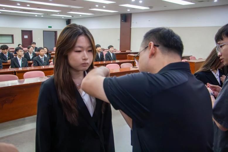 仪式在国歌声中拉开帷幕。李欣璐宣读了新团员名单。出席的领导、老师和优秀团员代表为新团员们佩戴了团徽。