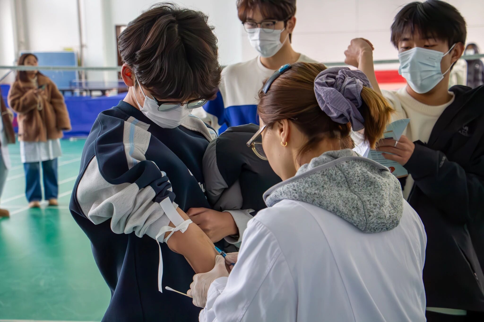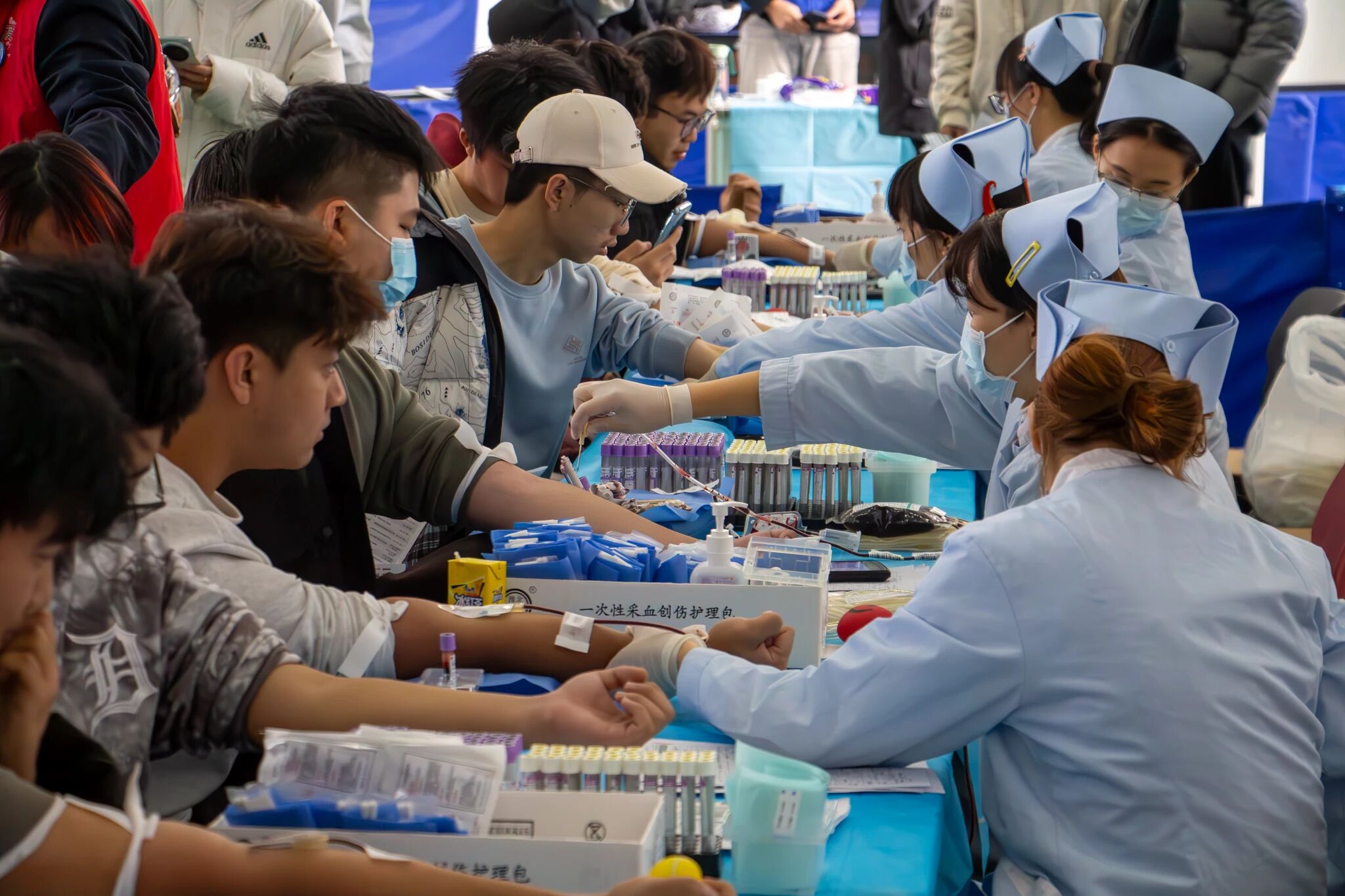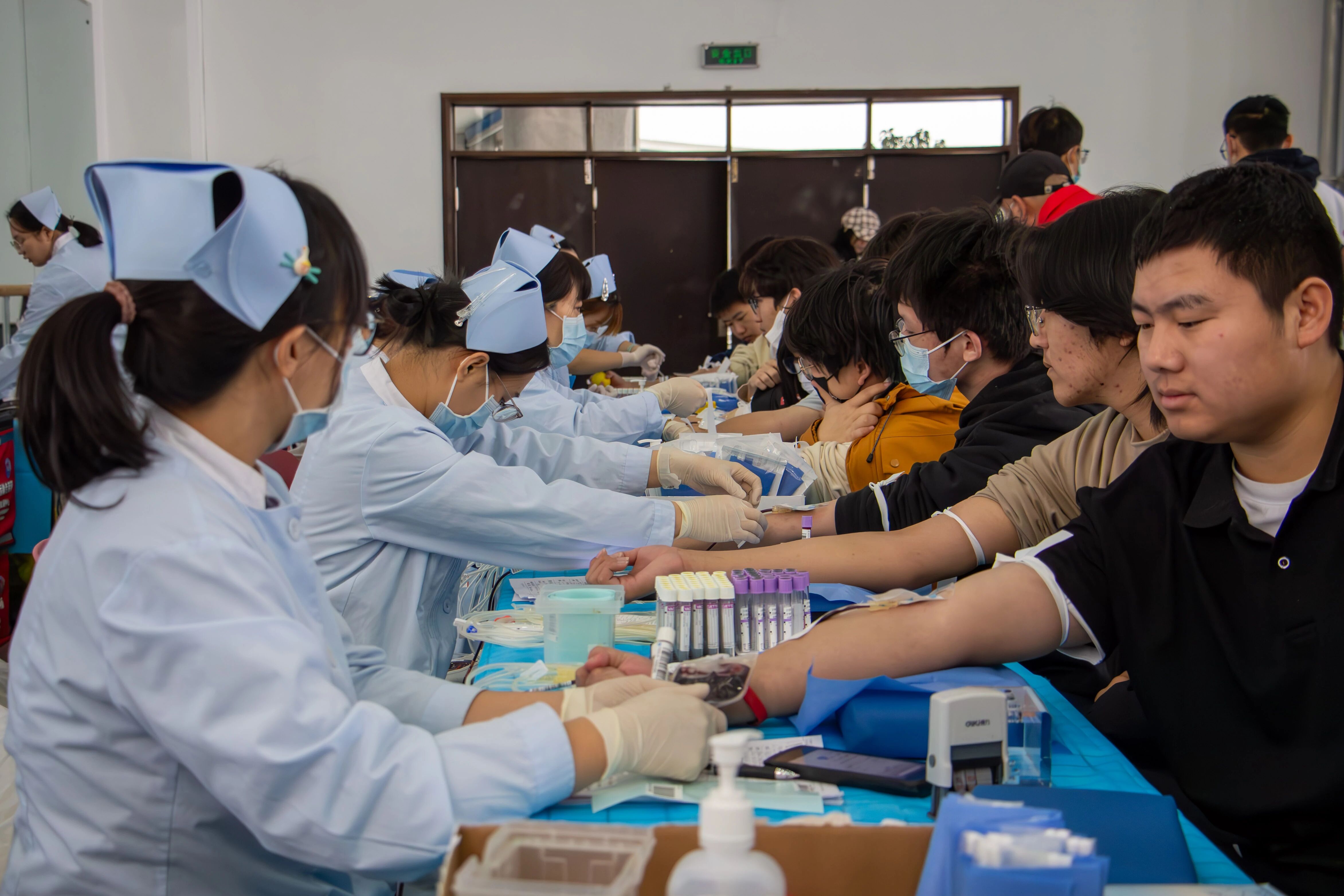学子在学校会议中心多功能厅参与无偿献血活动。青年学子以实际行动传递爱心,在冬季为无偿献血事业注入青春力量。