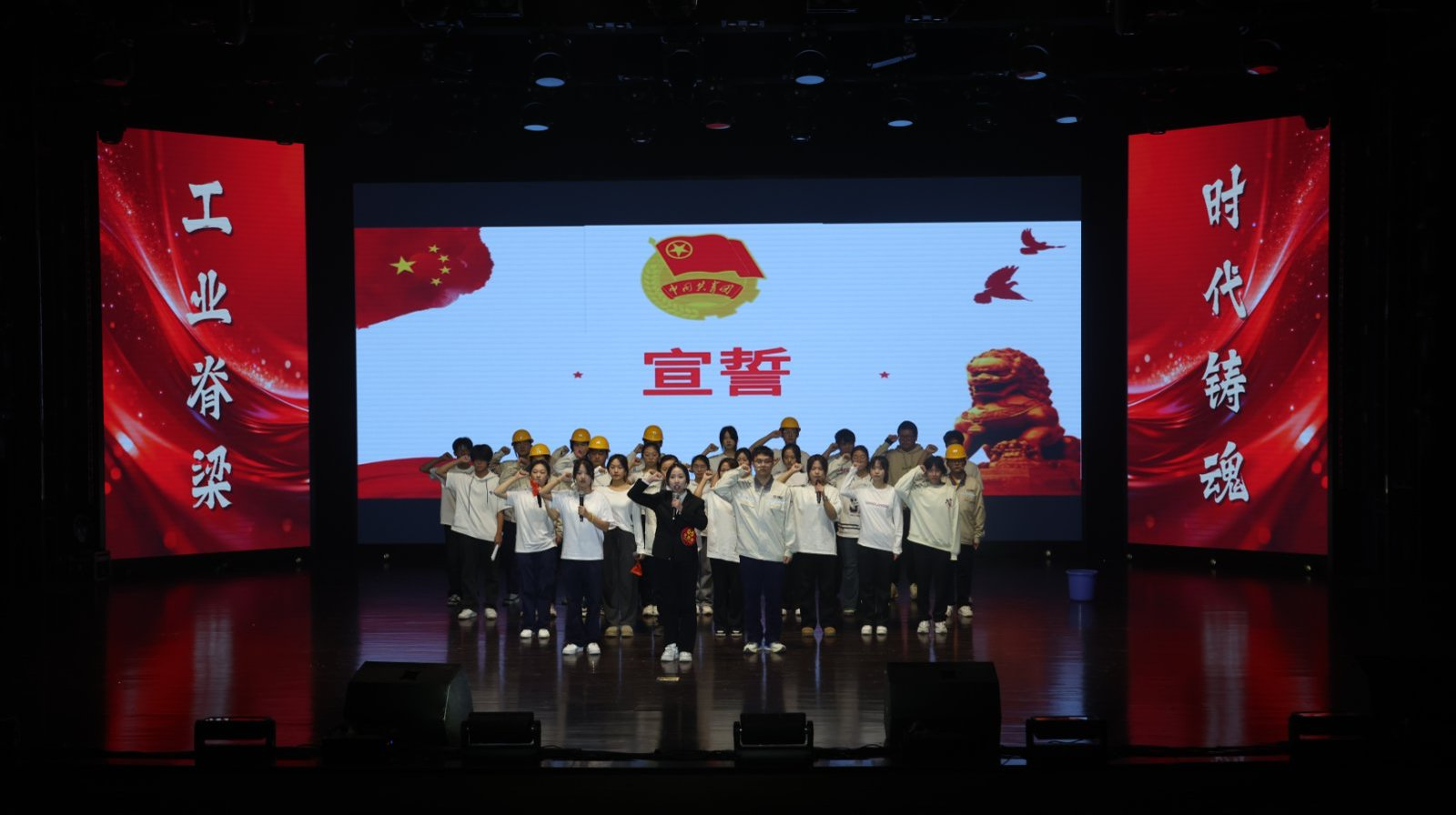 团课在全体团员庄严的青春誓言中走向尾声。“以钢为骨,以创为魂……强国有我,做时代工业脊梁!”铿锵有力的集体朗诵与宣誓,配合恢弘激昂的音乐与视觉呈现,将现场氛围推向顶点,也道出了新时代青年传承钢魂、接续奋斗的共同心声。