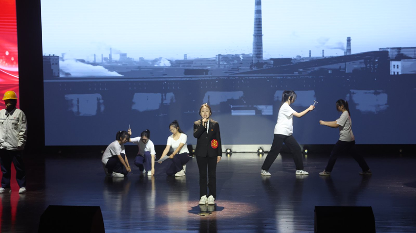 从一声跨越时空的钢钎回响,到轰鸣沸腾的钢厂现场,演员们以富有张力的劳动雕塑群像,瞬间将观众带入那段火红岁月。核心讲述者一句“这就是鞍钢的声音,这就是共和国工业脊梁拔节生长的声音!”道出了整个展演的情感基调,也点燃了观众心中对工业精神的敬畏与向往。