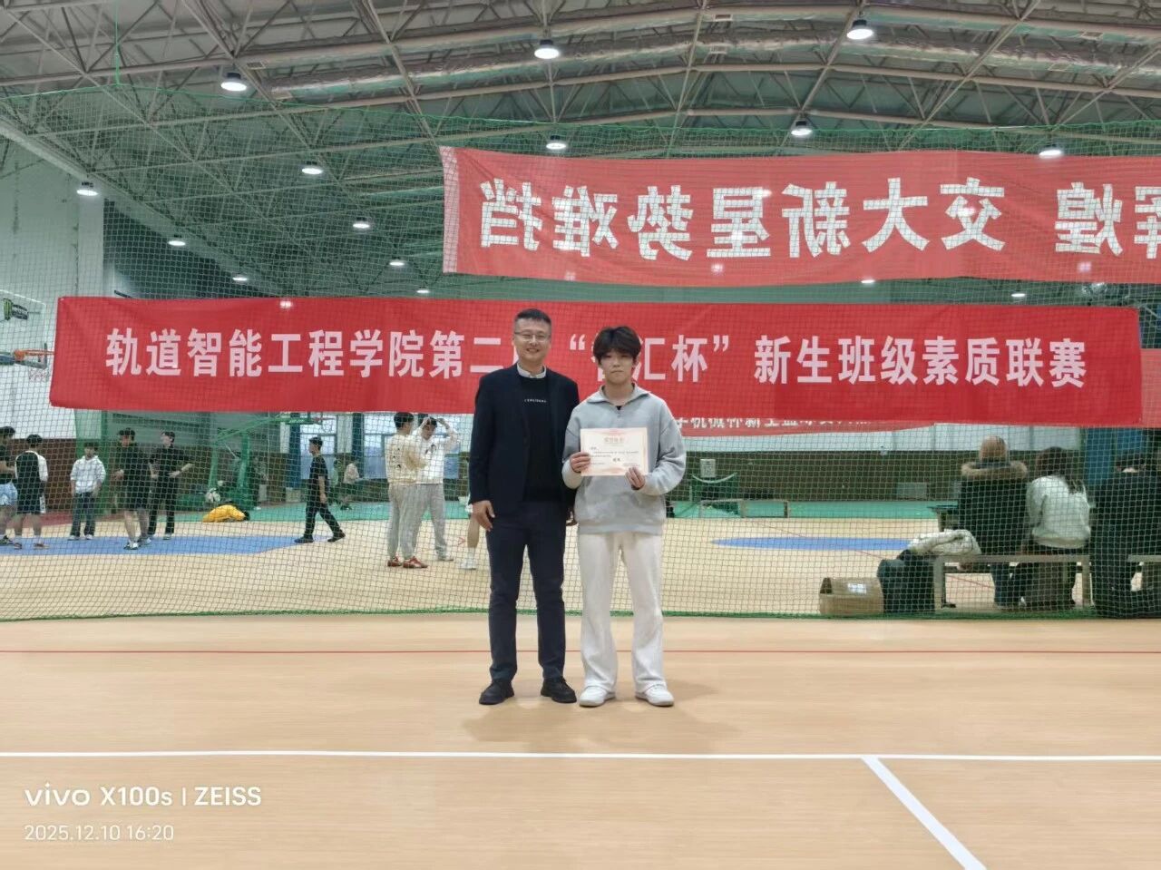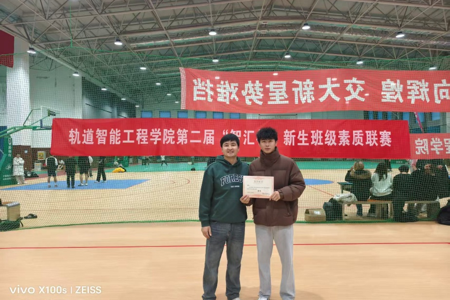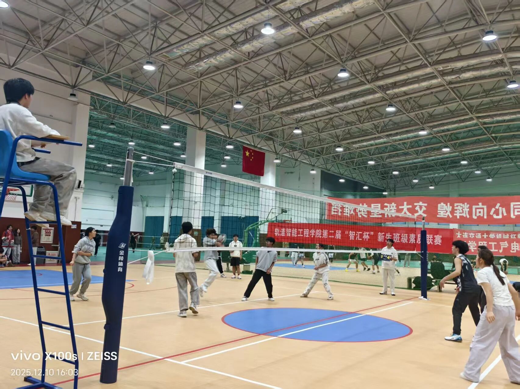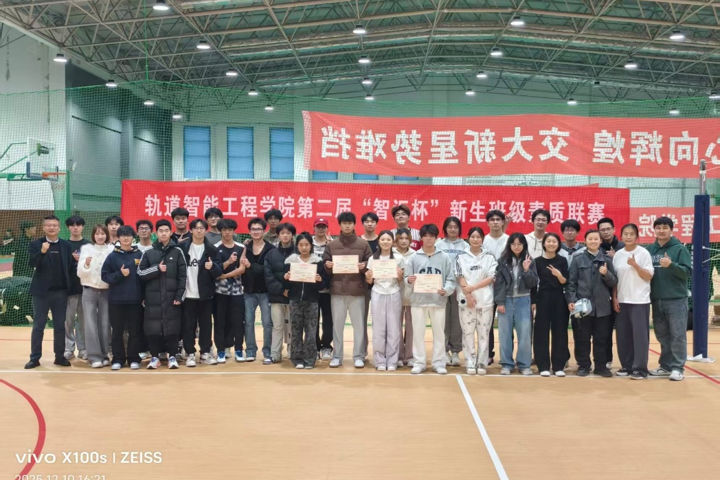 于旅顺口校区二期文体中心举办了第二届“智汇杯”新生班级素质联赛暨2025级新生排球赛决赛。学院党委副书记邓晗,辅导员李修竹、别尔森火加·夏木西丁以及新生辅导员李祉诺到场观赛,2025级本科生各专业代表队参赛。