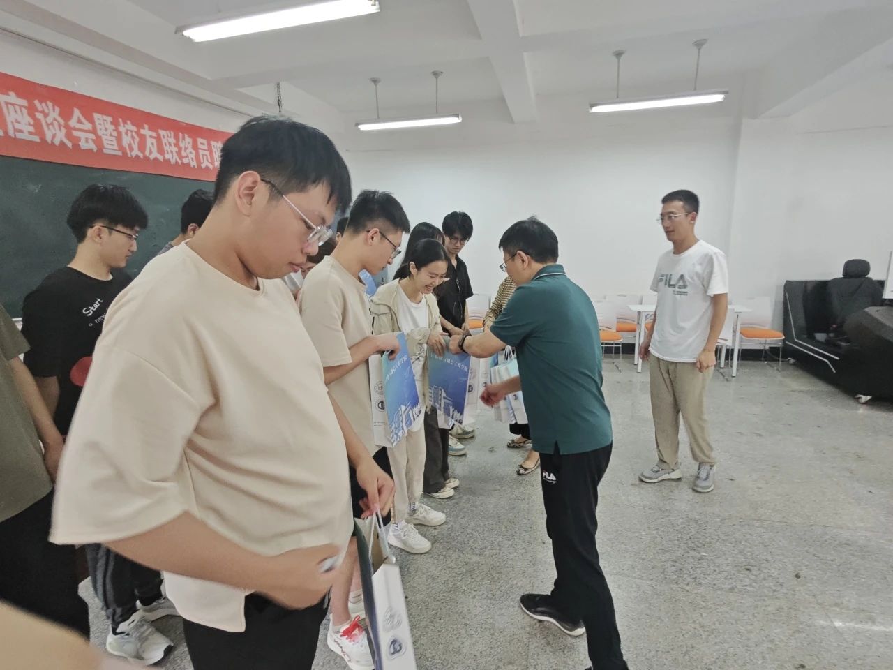 姜来金宣布校友联络员的聘任名单,并逐一为校友联络员们颁发聘书。在颁发聘书的过程中,姜来金还对联络员们寄予厚望,希望他们能够充分发挥自己的优势,为校友工作贡献自己的力量。