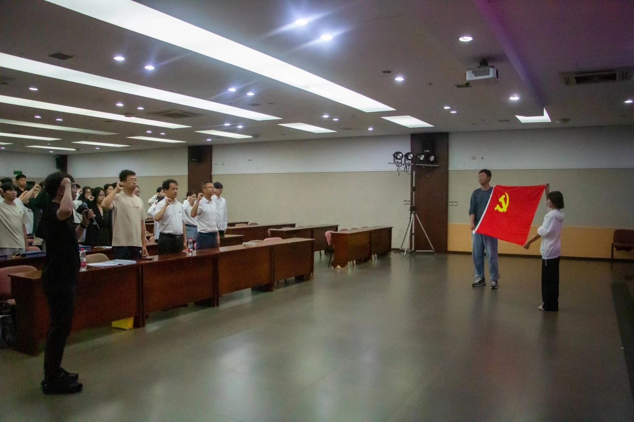 在毕业班党员主题教育活动中,全体毕业班党员在本科生第二党支部书记郭茂榕的带领下,重温了入党誓词,一句句铿锵有力的誓言,回荡在活动现场。每一个字句都仿佛在耳边回响,唤起了他们对入党初心的深刻记忆和对党的无限忠诚。